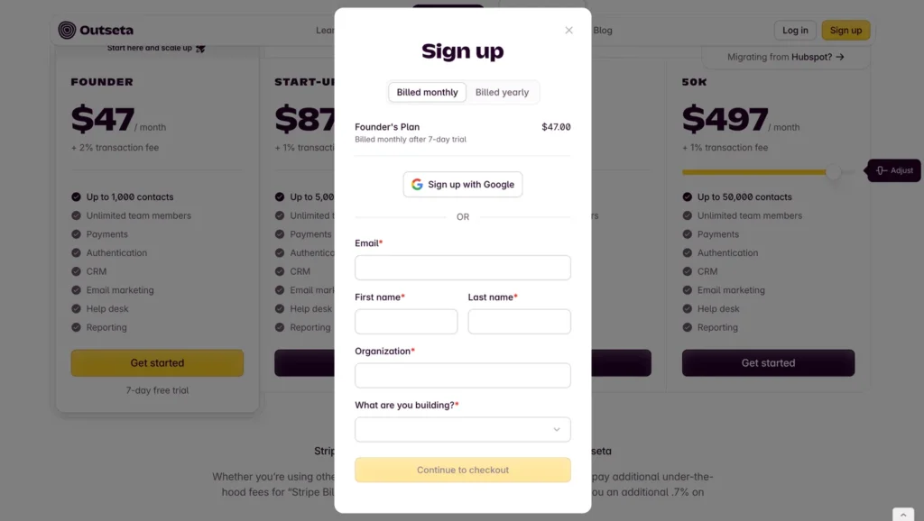 Move beyond disjointed account creation and checkout flows required when using third party payment tools. Outseta allows you to build a checkout experience that feels native to your own site.